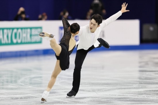 在雙人滑方面,杜迪克/德尚以198.80分獲得冠軍,日本組合及美國(guó)組合緊隨其后,獲得亞軍、季軍。