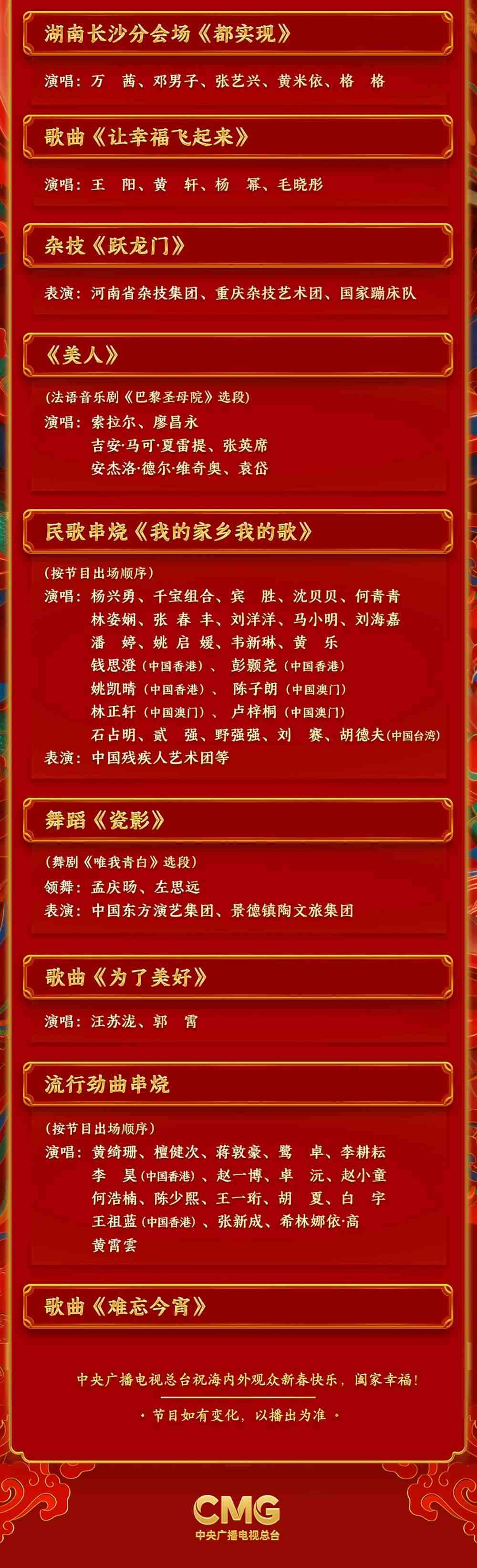 春滿中華,福到萬家。中央廣播電視總臺(tái)《2024年春節(jié)聯(lián)歡晚會(huì)》節(jié)目單正式發(fā)布。