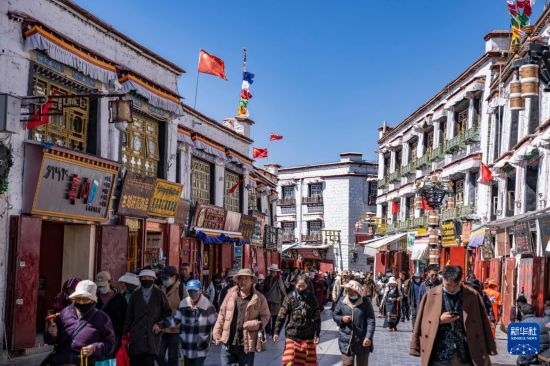 3月14日,拉薩市大昭寺廣場前游人如織。