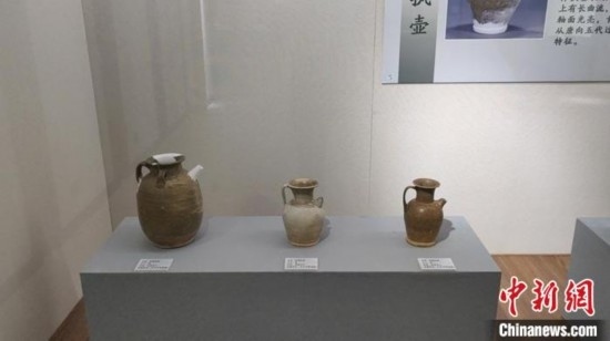 吉林市舉行的唐瓷之韻——江西出土唐代青瓷展上,部分出自樂平南窯遺址的珍稀文物,將景德鎮(zhèn)制瓷歷史往前推了200年。圖為展出的文物。石洪宇 攝