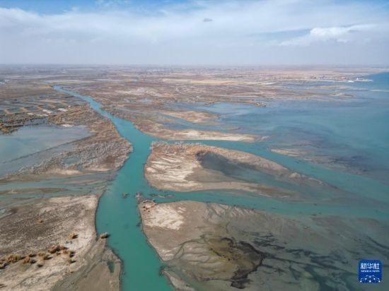 這是3月24日拍攝的新疆博斯騰湖景區(qū)(無人機(jī)照片)。