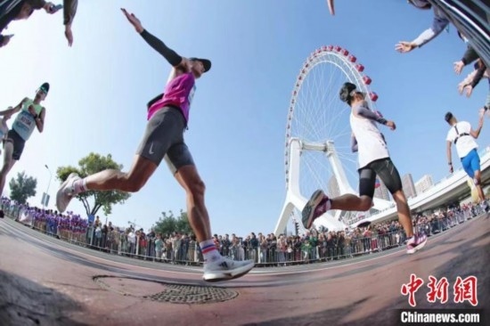2023年10月,天津馬拉松時隔17年后重返市區(qū)進行比賽,共吸引了29個國家和地區(qū)約9.5萬人參與報名。途經(jīng)7個行政區(qū)的線路串聯(lián)起天津五大道、民園廣場、世紀鐘、天津之眼等諸多天津城市地標型建筑和知名景點,“驚艷”著來自世界各地的參賽選手。
