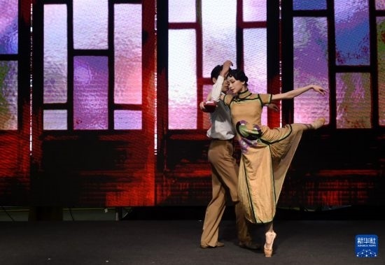 5月8日,演員吳虎生和戚冰雪(右)在表演芭蕾舞劇《花樣年華》選段。新華社記者 賀燦鈴 攝