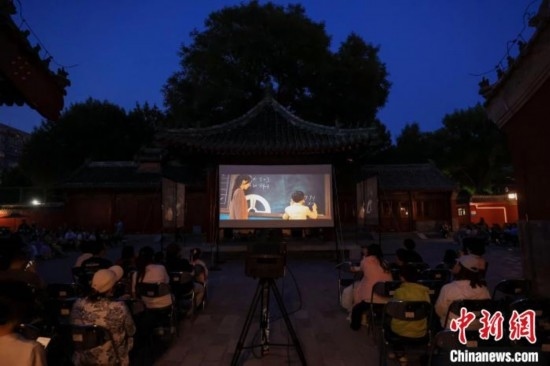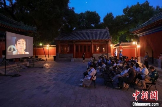 6月1日,2024北京博物館月電影周活動(dòng)啟動(dòng)。圖為觀眾在北京古代建筑博物館神倉(cāng)院落觀看電影《皮皮魯與魯西西之罐頭小人》。(北京市文物局供圖)