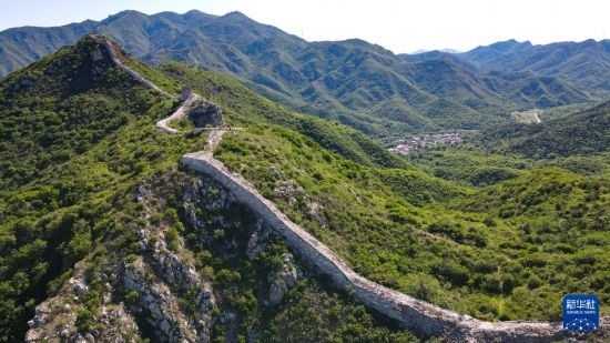 石峽關(guān)長(zhǎng)城和長(zhǎng)城腳下的石峽村(6月1日攝,無(wú)人機(jī)照片)。