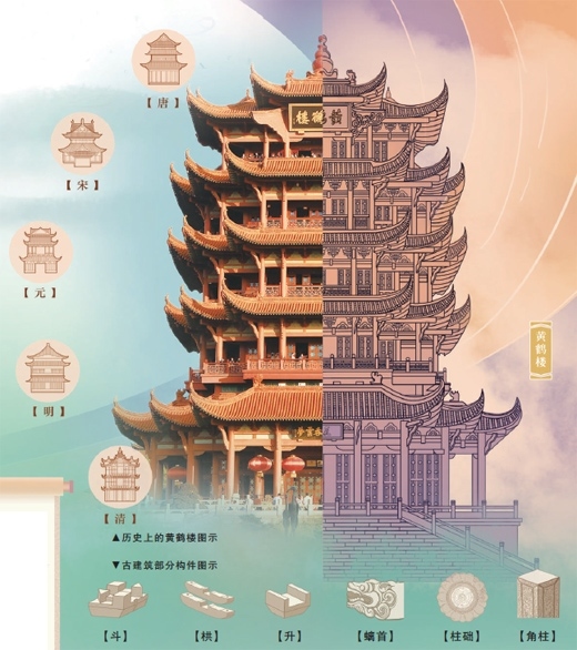 2022年,馮中景完成了他迄今為止最滿意的一件作品——黃鶴樓模型?!扒捌诶L圖一個半月,制作則花了兩個多月,經(jīng)常需要工作到凌晨?!瘪T中景還記得,作品最終完成的那個深夜,他望著包含1.7萬多塊木質(zhì)零件的黃鶴樓模型,“‘白云千載空悠悠’的場景仿佛就在眼前?!?/p>