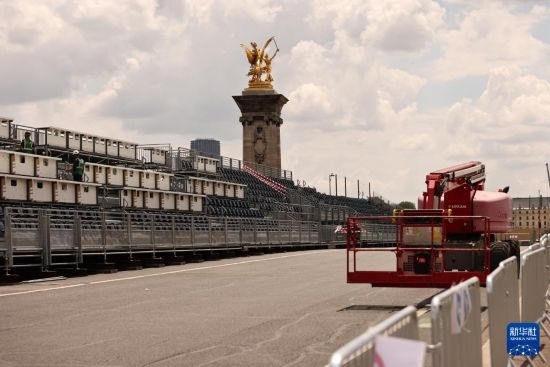 這是6月4日在位于法國(guó)巴黎市中心的亞歷山大三世橋拍攝的臨時(shí)比賽場(chǎng)地搭建現(xiàn)場(chǎng)。這里將是巴黎奧運(yùn)會(huì)多個(gè)比賽項(xiàng)目的終點(diǎn),包括公路自行車個(gè)人計(jì)時(shí)賽、游泳馬拉松、鐵人三項(xiàng)比賽。新華社記者 高靜 攝