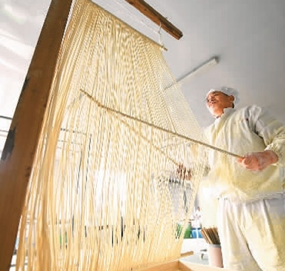 一方水土養(yǎng)一方人,一方美食顯一方品性。這宮面就如生活在冀中平原的人一般,性格憨厚中直,心里卻自有玲瓏。雖然表面和一般的掛面無二,但一根根宮面,卻須經(jīng)過“千錘百煉”。