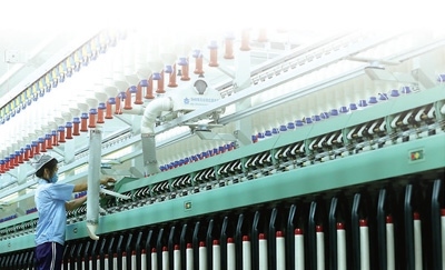 圖為青島即發(fā)盛寶紡織有限公司紡織智能生產(chǎn)線正在生產(chǎn)高端纖維。梁孝鵬攝(新華社發(fā))