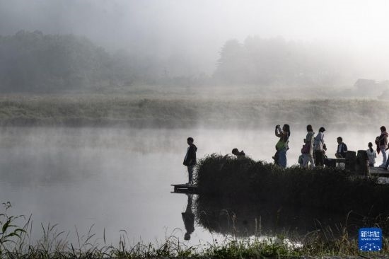 8月16日,游客在神農(nóng)架大九湖國家濕地公園游覽。