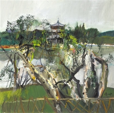 一系列實(shí)踐折射出新時(shí)代油畫的特點(diǎn):既蘊(yùn)含現(xiàn)實(shí)主義理念和表現(xiàn)的深度,又富有東方浪漫主義的詩性。比如,在“第四屆青山行不盡——唐詩之路藝術(shù)展:長風(fēng)幾萬里”“山海神游——詩路浙江山水繪畫臺州主題展”等展覽上,一些充滿山海情懷、草木生機(jī)、時(shí)尚意趣的作品,正體現(xiàn)了創(chuàng)作者根植時(shí)代生活的藝術(shù)創(chuàng)造,以及圓融飽滿、充滿東方意蘊(yùn)的表達(dá)?!敖搅魟氽E,我輩復(fù)登臨”。對于畫家而言,每一次登臨祖國的名山大川,都仿佛是應(yīng)和歷史的邀約。我們重識祖國的山水,接受山水的浸潤,直面山水的歷史,把握山水的立意,實(shí)現(xiàn)山水的寫意。這種腳踏大地、丈量古今的行走,成為詩意汩汩不絕的生長方式——不管承載這詩意的是煥彩文章、是筆墨油彩、是影像裝置,還是園林雕塑或者其他。
