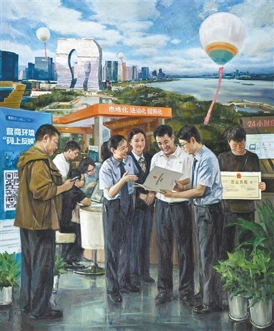 油畫《浙江省三個(gè)“一號工程”——改革攻堅(jiān)》,浙江省油畫院集體創(chuàng)作。