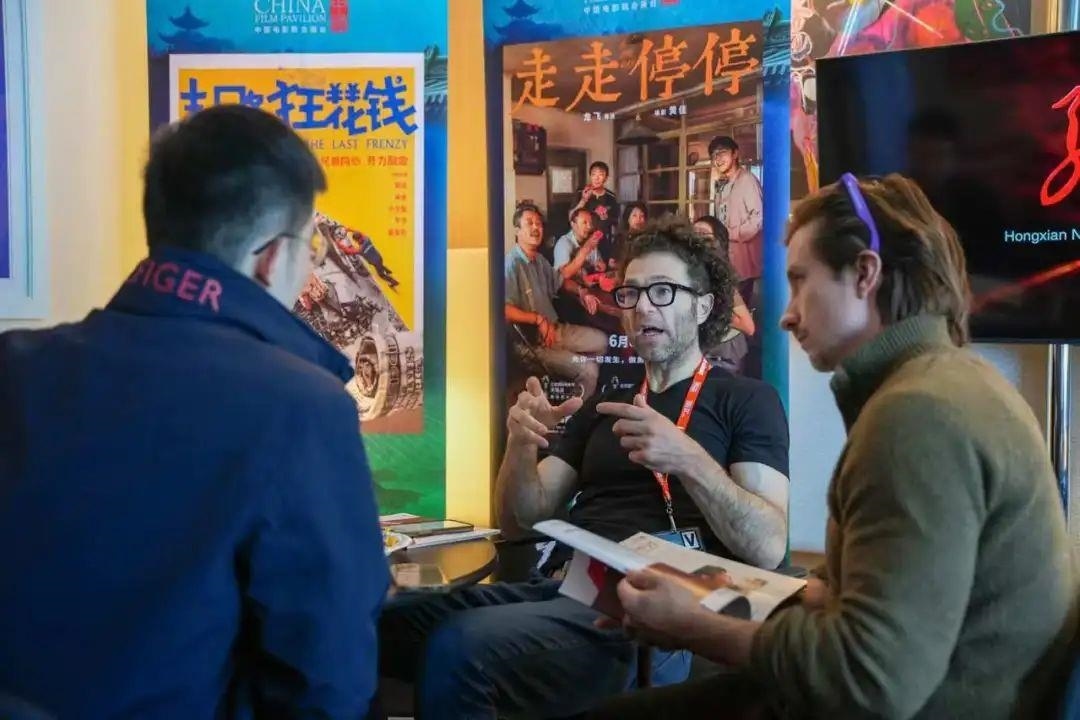 聯(lián)合展臺的展位上,前來垂詢的國際同行絡(luò)繹不絕,工作人員通過現(xiàn)場講解、資料展示以及個別洽談等方式介紹了中國電影市場的概況、發(fā)展成就及產(chǎn)業(yè)政策,國內(nèi)參展商代表也借此機會與海外從業(yè)者進行了面對面的交流。
