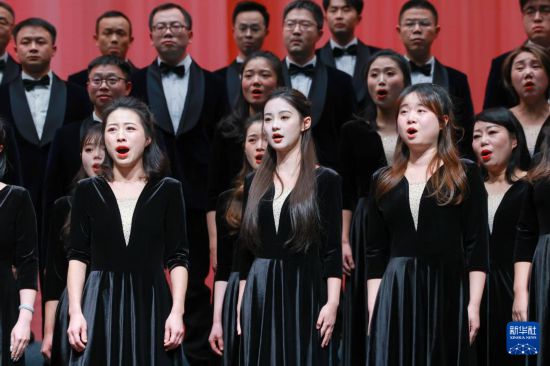 12月29日,貴州大學(xué)音樂學(xué)院愛樂合唱團(tuán)在演出。
