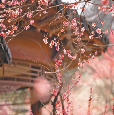 南京的賞梅勝地,除了東郊的梅花山,西郊的古林公園梅嶺、南郊的雨花臺梅崗等地同樣游人如織。近年來,梅崗新種植了大片梅樹,還修建起訪梅亭、問梅閣、寒香軒等仿古建筑,花開時節(jié)香雪滿樹,梅影橫窗,暗香浮動。許多年輕人來這里打卡拍照,定格下與梅花同框的青春瞬間。
