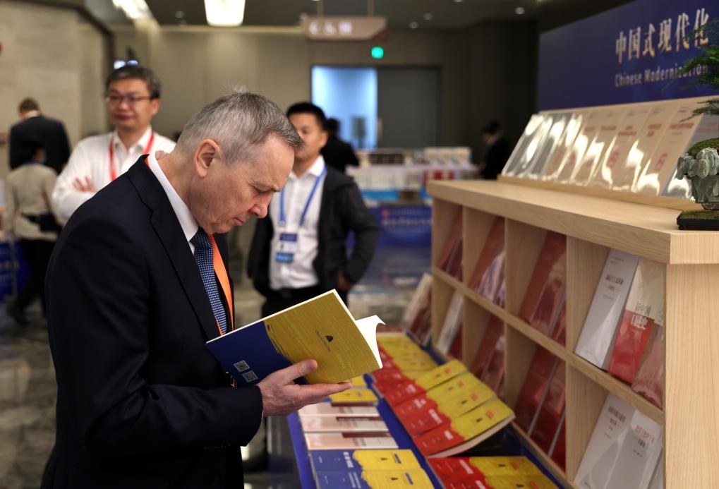 2024年12月3日,2024年“讀懂中國(guó)”國(guó)際會(huì)議與會(huì)嘉賓在會(huì)場(chǎng)閱讀書籍。新華社記者盧漢欣攝