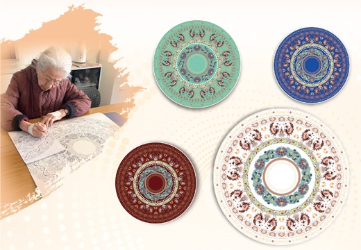 圖為常沙娜和她設(shè)計的紋樣。