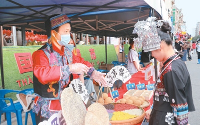 此次大聯(lián)歡首次將舞臺設(shè)在邊境特色街區(qū),除了精彩的文藝表演外,還設(shè)置了中越非遺展示區(qū)、特色商品展銷區(qū)等互動區(qū)域,為邊民和游客提供更多互動交流的機會。