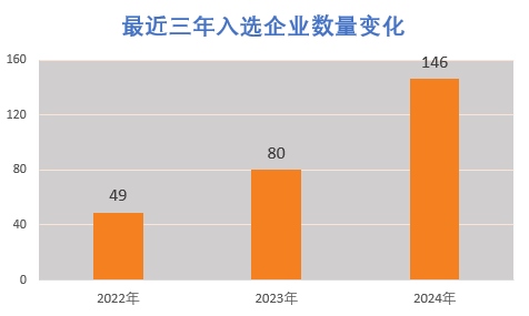 據(jù)了解,入選企業(yè)評(píng)選標(biāo)準(zhǔn)非常嚴(yán)格,需同時(shí)滿足專業(yè)化、精細(xì)化、特色化、創(chuàng)新能力、產(chǎn)業(yè)鏈配套等多個(gè)指標(biāo)。盡管如此,2024年名單中的企業(yè)與2022年49家和2023年80家相比,大幅增加到146家。