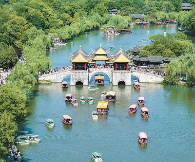 “五一”假期,人們在江蘇揚(yáng)州瘦西湖景區(qū)游覽。