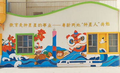 清晨,太陽剛剛升起,新疆伽師縣西克爾庫(kù)勒鎮(zhèn)中心幼兒園內(nèi),一群背著畫板、提著顏料箱的年輕人已開始忙碌。剛翻新的幼兒園墻面成為他們的畫布,大海與雪山、醒獅與烤馕、廣州塔與喀什高臺(tái)民居等粵新兩地文化元素在此相遇。百人共繪的畫卷(局部見圖),不僅點(diǎn)亮邊疆孩子們的藝術(shù)星空,也滋潤(rùn)著共創(chuàng)者的心靈。