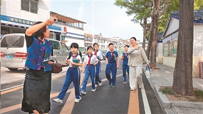郭璐(左)和深圳市鹽田區(qū)鹽港小學(xué)的師生們一起,走出課堂,開展“尋秘疍家”主題活動。