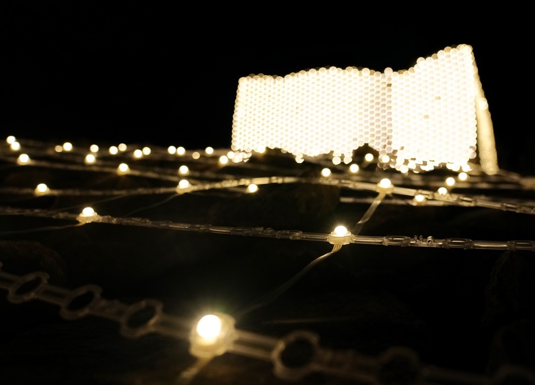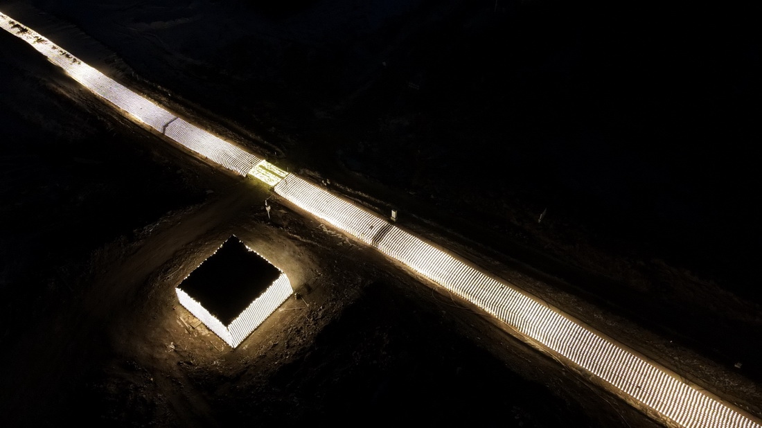 這是崇禮長(zhǎng)城景觀展示亮化工程現(xiàn)場(chǎng)的燈帶(12月30日攝)。新華社記者 楊世堯 攝