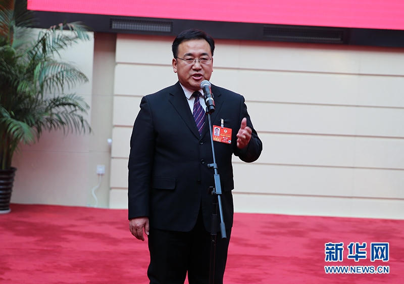 13日下午,在內(nèi)蒙古自治區(qū)政協(xié)十二屆三次會議舉辦的第二場“委員通道”上,政協(xié)委員魏山虎在回答記者提問。新華網(wǎng)石毅攝