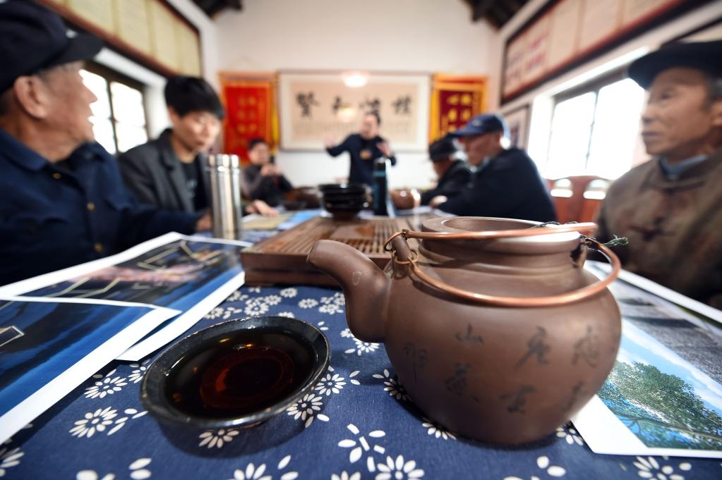 古樸的茶館里,老茶客劉進(jìn)華與幾位鄉(xiāng)親圍坐桌旁,商量著在人大代表接待日提出一個建議——修建公廁,既方便游客,也提升小鎮(zhèn)形象。