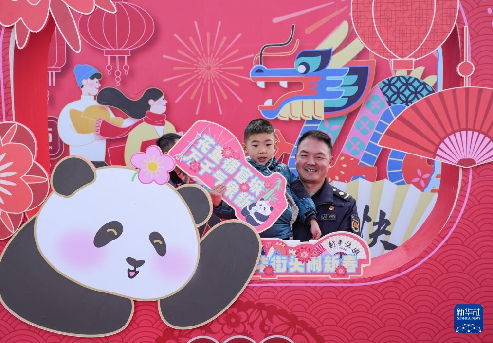 ??2月9日,在四川省成都市,旅客在成都東站西廣場的新年主題裝飾處留影。