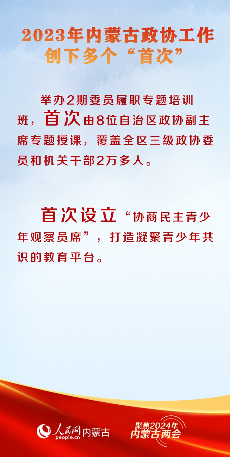 1月29日上午9時(shí),中國(guó)人民政治協(xié)商會(huì)議第十三屆內(nèi)蒙古自治區(qū)委員會(huì)第二次會(huì)議在內(nèi)蒙古人民會(huì)堂開(kāi)幕。2023年,內(nèi)蒙古自治區(qū)政協(xié)堅(jiān)持以改革思維、創(chuàng)新理念、務(wù)實(shí)舉措推進(jìn)履職能力建設(shè),推出多項(xiàng)創(chuàng)新舉措,開(kāi)創(chuàng)了新時(shí)代政協(xié)工作新局面。