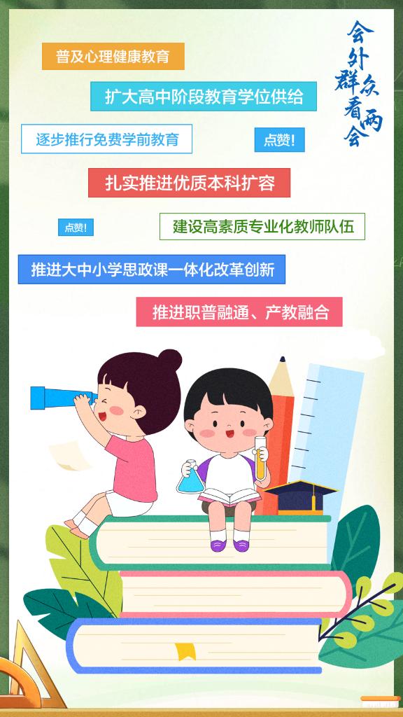 新華社北京3月6日電 教育事關(guān)每個(gè)家庭。今年的政府工作報(bào)告提出,加快建設(shè)高質(zhì)量教育體系,制定實(shí)施教育強(qiáng)國建設(shè)三年行動(dòng)計(jì)劃……對(duì)于報(bào)告相關(guān)的教育“熱搜話題”,群眾怎么看?
