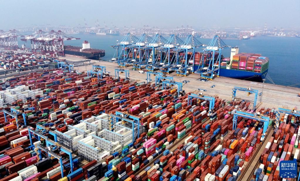 山東港口青島港前灣集裝箱碼頭(3月24日攝,無人機照片)。新華社記者李紫恒攝