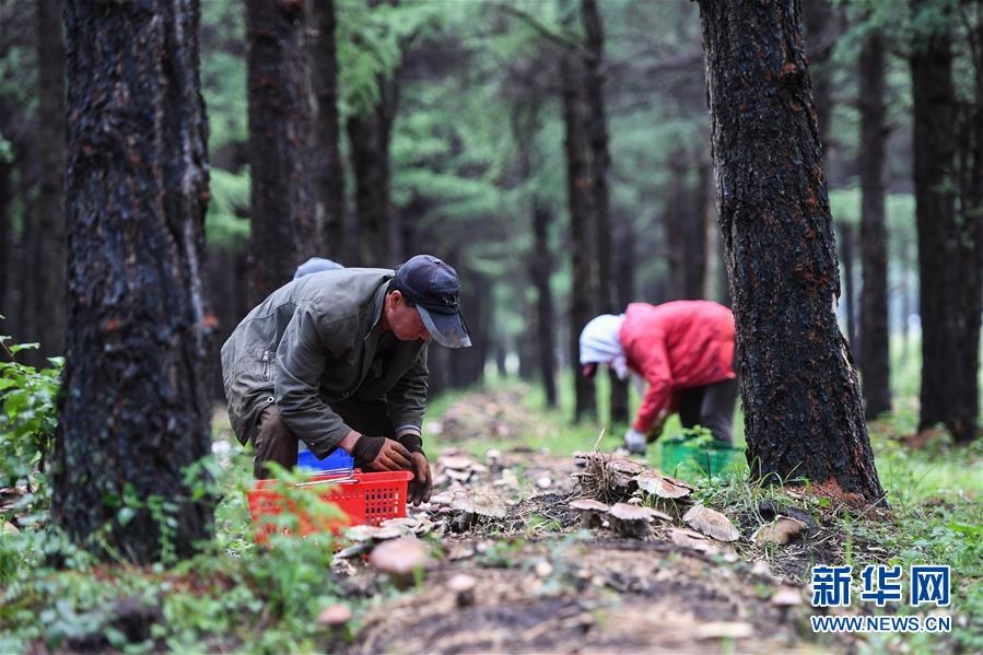 近日,內(nèi)蒙古克什克騰旗樺木溝林場(chǎng)的大球蓋菇長(zhǎng)勢(shì)喜人,工人們?cè)诿芰珠g忙著采摘。這是當(dāng)?shù)亓謭?chǎng)與青島農(nóng)業(yè)大學(xué)于2018年起開始合作的食用菌林下種植試驗(yàn)項(xiàng)目,目前這里的大球蓋菇畝產(chǎn)能達(dá)4000斤以上,還吸引了許多游客來(lái)體驗(yàn)林中蘑菇采摘。今年,該試驗(yàn)項(xiàng)目已經(jīng)小規(guī)模推廣到林場(chǎng)周邊鄉(xiāng)鎮(zhèn),林下種菌使老林區(qū)有了新活力,帶動(dòng)了林區(qū)居民增收。新華社記者 劉磊 攝