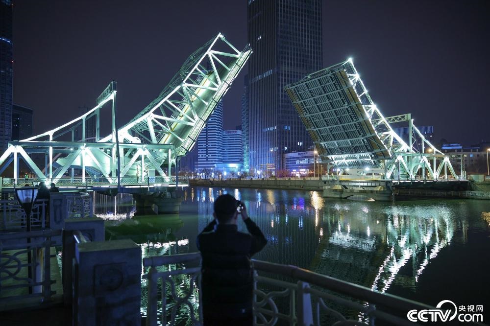 央視網(wǎng)消息:3月19日凌晨,天津解放橋進(jìn)行了全面檢修后的首次開(kāi)啟調(diào)試工作。在此次調(diào)試中,橋體以最大角度進(jìn)行開(kāi)啟,以此檢驗(yàn)各項(xiàng)功能的完善及安全。視覺(jué)中國(guó)