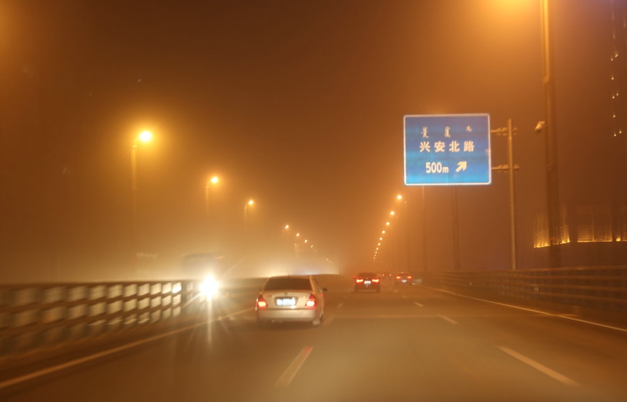 呼和浩特市氣象臺當(dāng)日19時30分發(fā)布的沙塵暴橙色預(yù)警信號顯示,武川能見度已經(jīng)下降到500米以下,預(yù)計今天夜間武川、土左、呼和浩特市區(qū)將有能見度小于500米的強(qiáng)沙塵暴,托縣、和林、清水河將出現(xiàn)能見度小于1000米的沙塵暴。