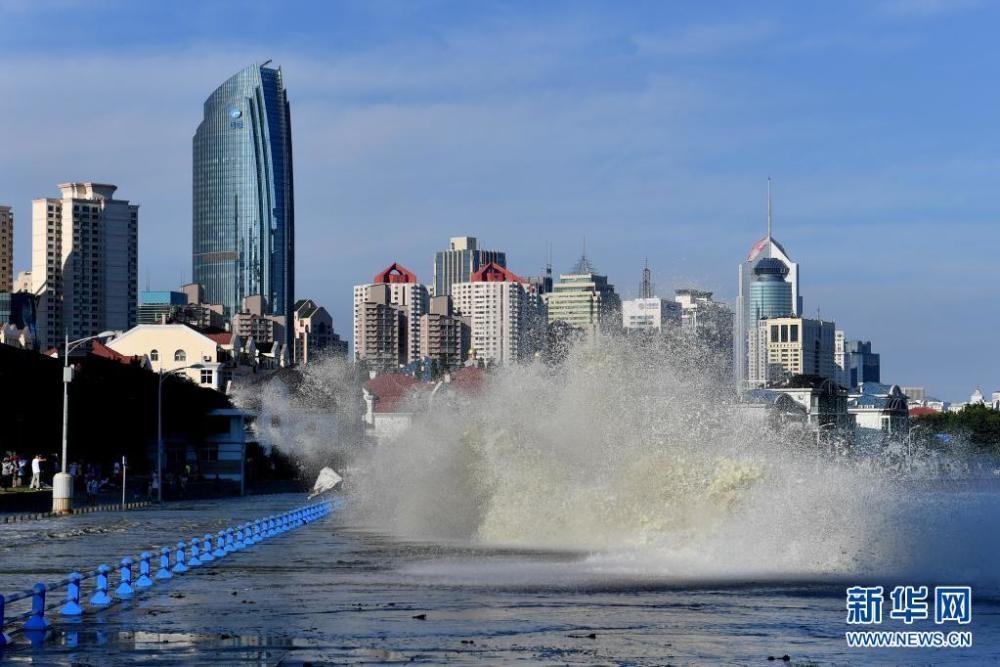 7月25日在山東省青島市澳門路海邊拍攝的巨浪。 受今年第6號臺風“煙花”影響,山東省青島市風力逐漸加大,沿海出現巨浪。新華社發(fā)(王海濱 攝) -